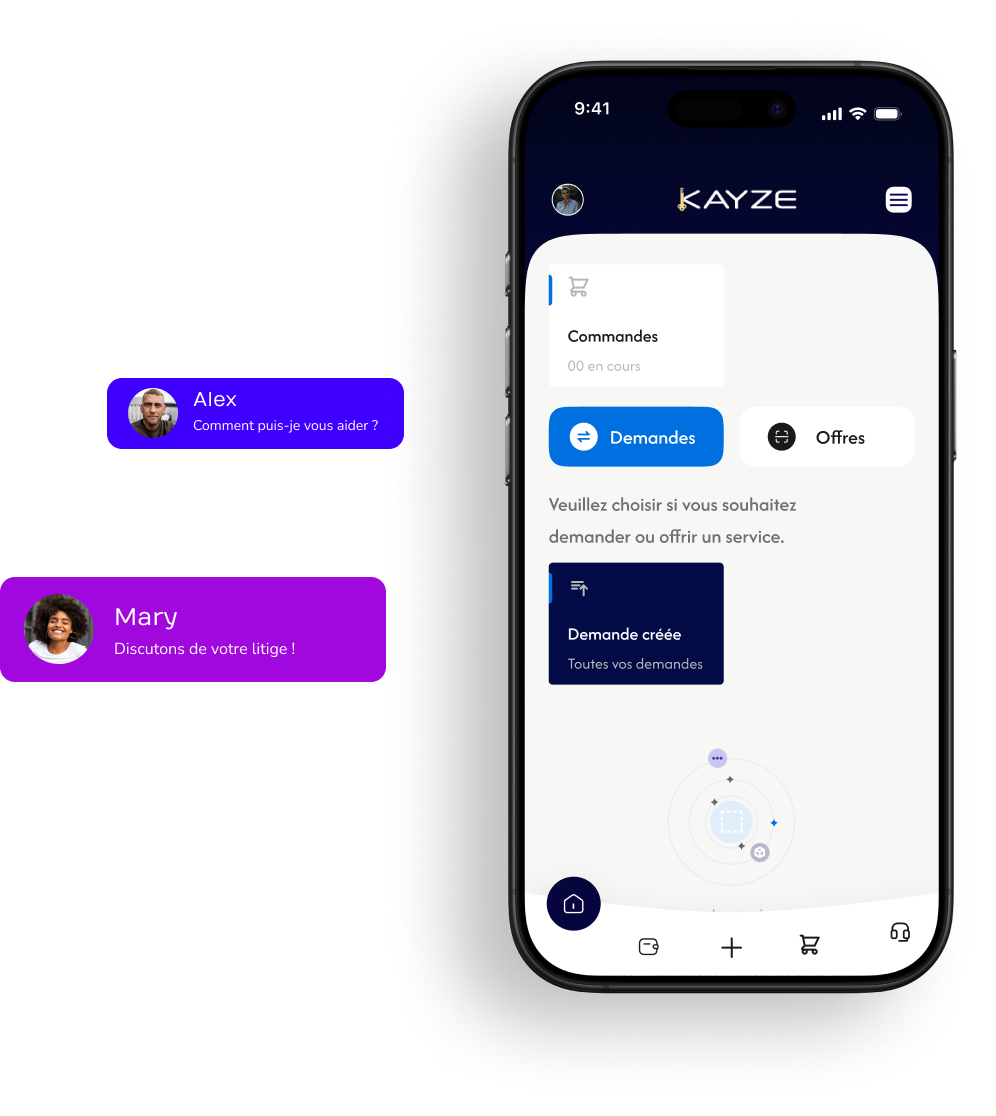 Bénéficiez d'une assistance 24/7 avec un support technique dédié, prêt à répondre à vos questions et à vous accompagner tout au long de votre utilisation de Kayze.